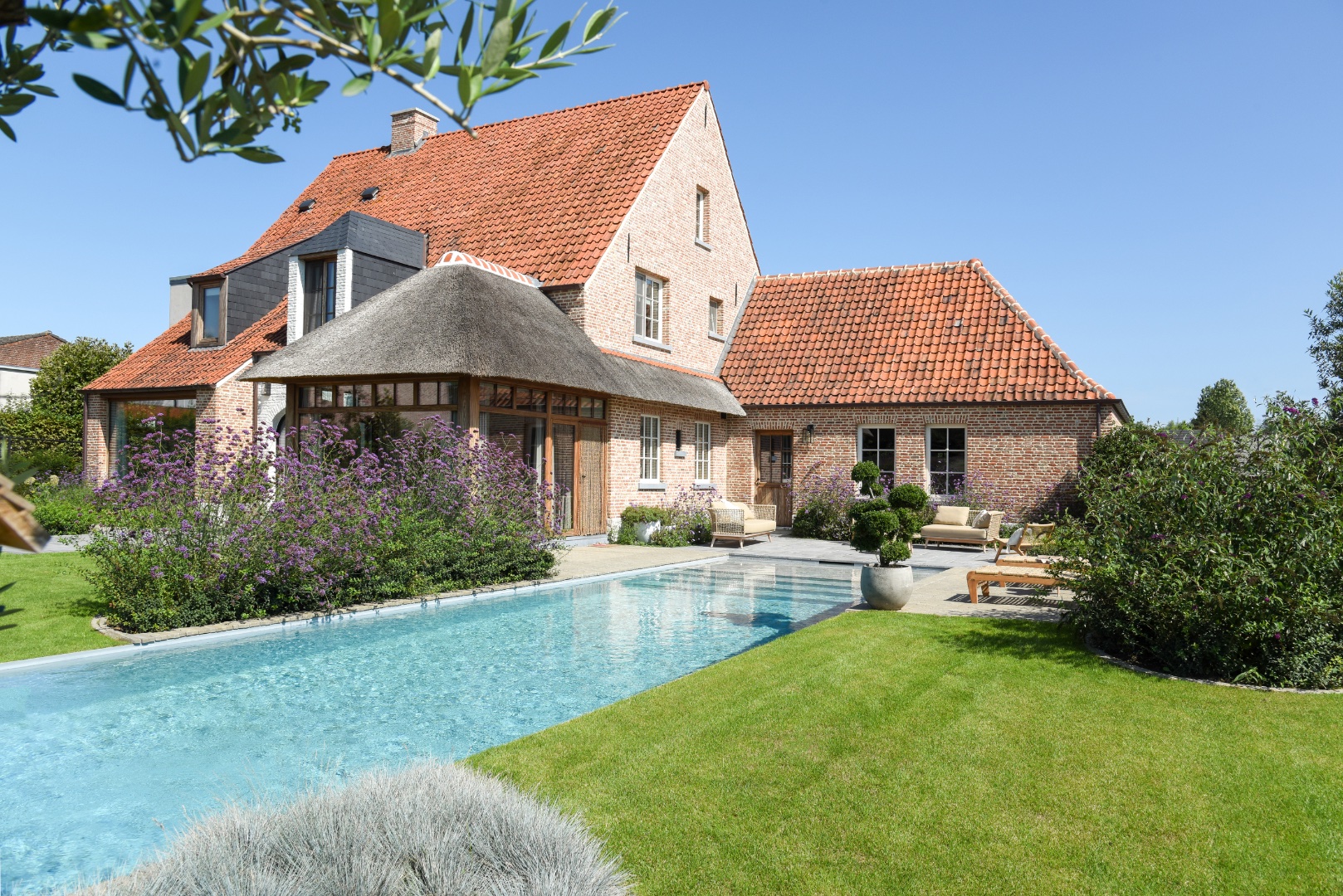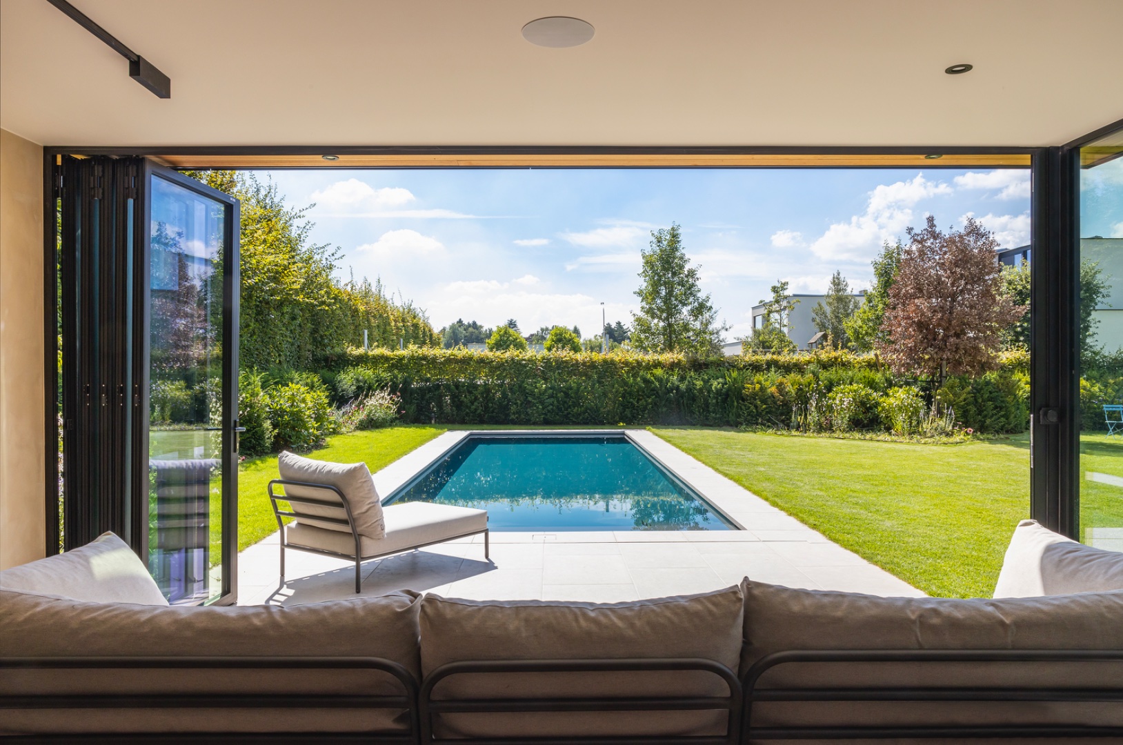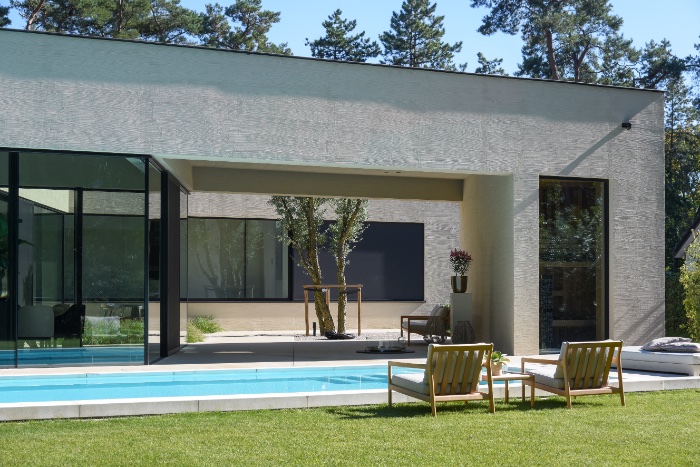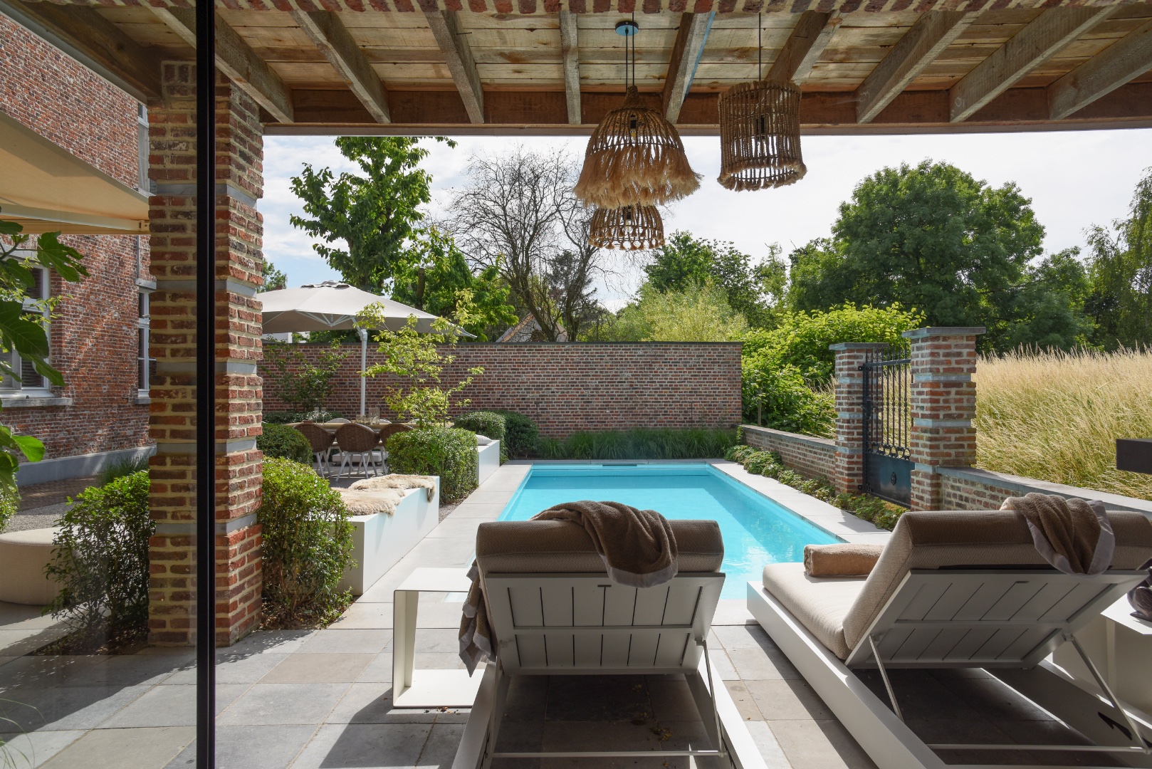 Een fraai poolhouse als verlengstuk van uw woning — voor berging, douche, lounge of buitenkeuken.