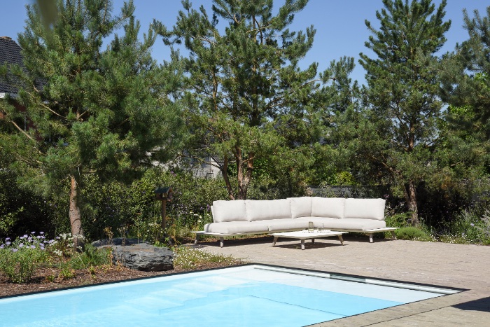 Polypropyleen zwembaden, overloopbaden, biopools of zwembaden met tegenstroomsysteem. Op maat, voor elke tuin.